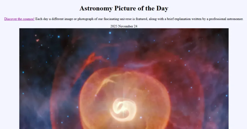 What it is: A visual browser that lets you explore NASA’s “Astronomy Picture of the Day” collection going back decades. It presents each space photo with a short explanation, turning complex cosmic events into simple, enjoyable discoveries.